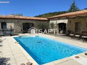 ...é, Charmante maison avec studio indépendant, piscine et spa, située dans un environnem...age, climatisation réversible et poêle à bois pour un confort optimal. Volets roul...ondeur 1.20 mètre. Bassin décoratif avec fontaine. Terrasse avec cuisine dété et b...