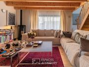 ...mur de pierre naturelle qui encadre un manteau de cheminée sculpté purement décoratif. Cette construction bénéficie par ailleurs dune isolation dinspiration nordique, gage dun confort thermique optimal en toute saison. Le sol, recouvert de dalles cla...