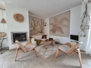 ...séjour salon cathédrale, salle à manger avec petite véranda bioclimatique attenante, c...e de bains (baignoire originale en teck, murs et placards en teck), salle deau ind...en parquet style pont de bateau). Jardin clos arboré, piscinable, avec abri de jar...