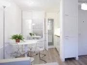 ...de 31,46 m², situé au 1er étage dun immeuble haussmannien de standing dans le très prié quartier de l...meublé avec soin. Le lieu séduit par son plan optimisé et son charme parisien: un ...
