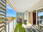 ...Terrasse avec jolie vue mer pour cet appartement t3. Avec place de parking privatif. Au sein dune jolie résidence fermée et sécurisée de 2016, cet appartement en très bon ...chaude collective, volets roulants électriques dans le salon, porte blindée, vi...