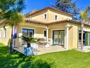 ...villa contemporaine de plain-pied denviron 140 m2 bénéficie dun jardin paysager plat avec piscine à débordement et dune belle vue panoramique jusquà la mer et lEsterel. La maison se compose dune entrée, dun séjour avec baies vitrées donnant sur la te...