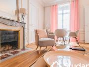 ... d’un élégant immeuble bourgeois, ce superbe appartement meublé de 125,20 m² CARREZ sé...olumes et son charme unique. Il comprend une entrée avec rangements intégrés, un d...isine équipée ouverte sur le séjour, une chambre, une salle de douche avec WC ains...